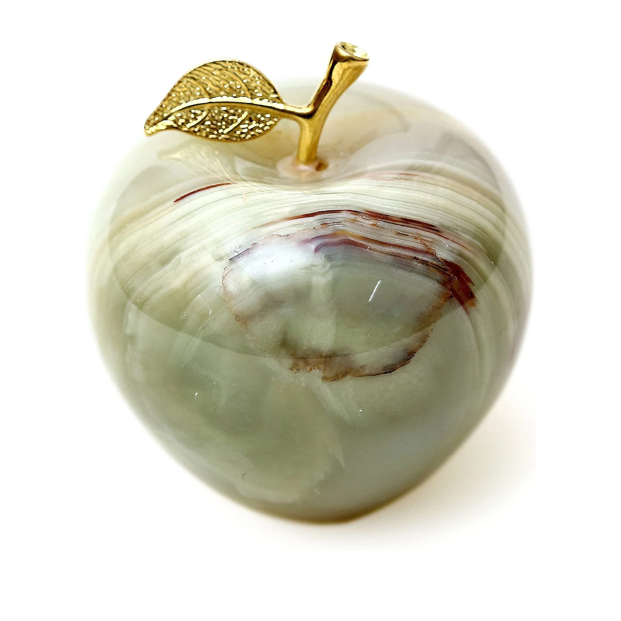 Apples are traditionally seen as symbols of appreciation, therefore making this paperweight an ideal gift for coworkers, friends, or family. Therefore show your gratitude with this elegant desk accessory. Each Marble Apple Paperweight we produce is hand-shaped and polished from a block of genuine marble. The detailed gold metal stem and leaf add a touch of luxury.